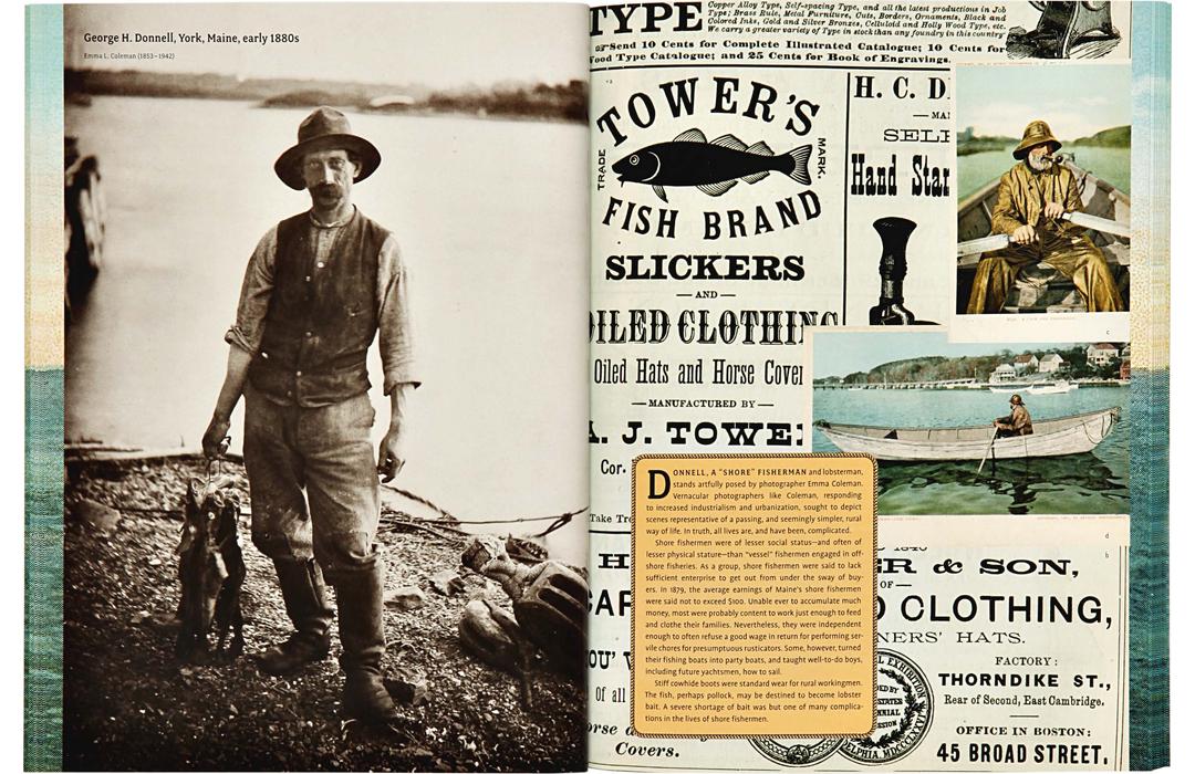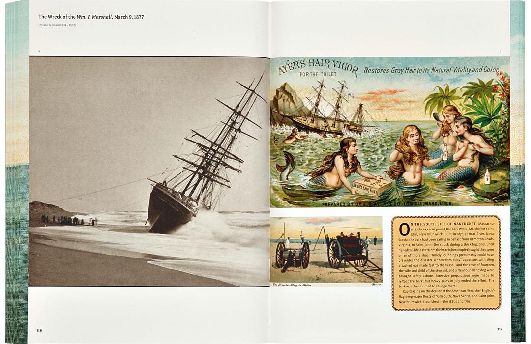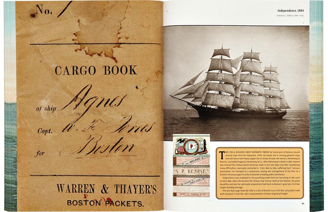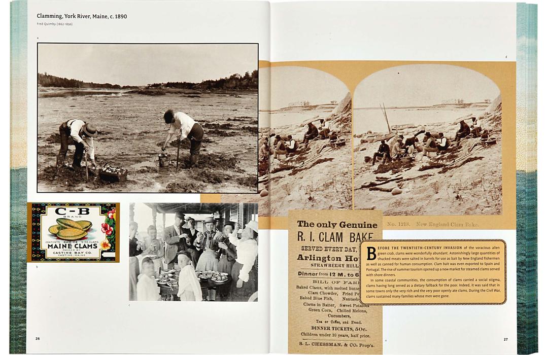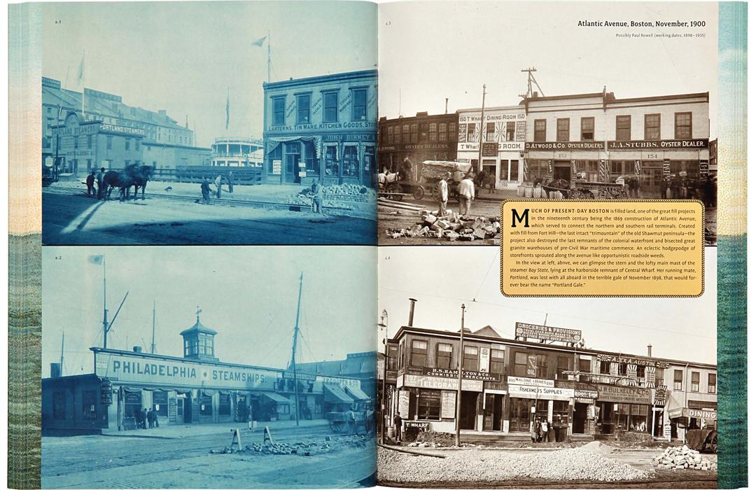 Design walks hand in hand with thematic content in this book of historic New England maritime photographs and memorabilia. Rope-bordered text boxes and slivers of ocean and sky on the pages’ edges compliment the book’s scrapbook feel, creating a kaleidoscopic vision of a bygone life on the coast. Negatives of historic ships on the endpapers complete the journey through memory and time.