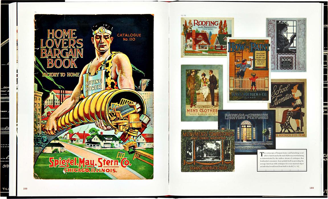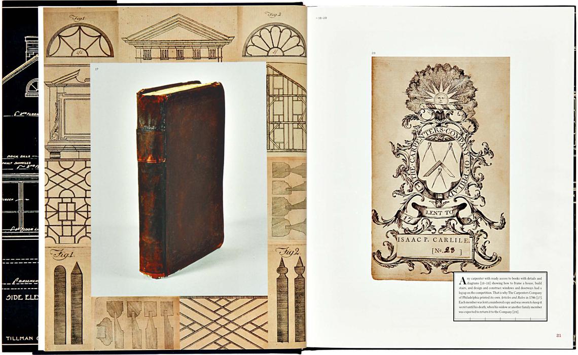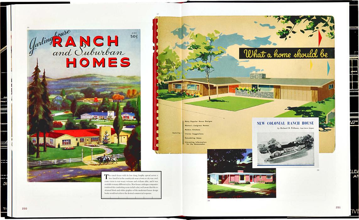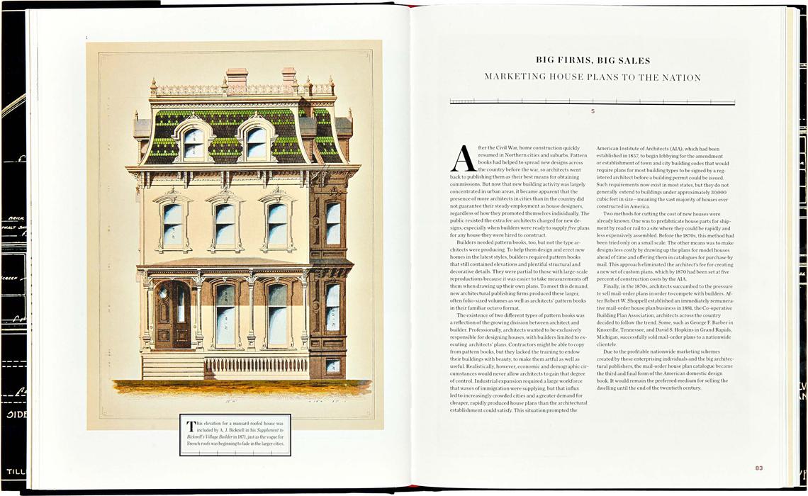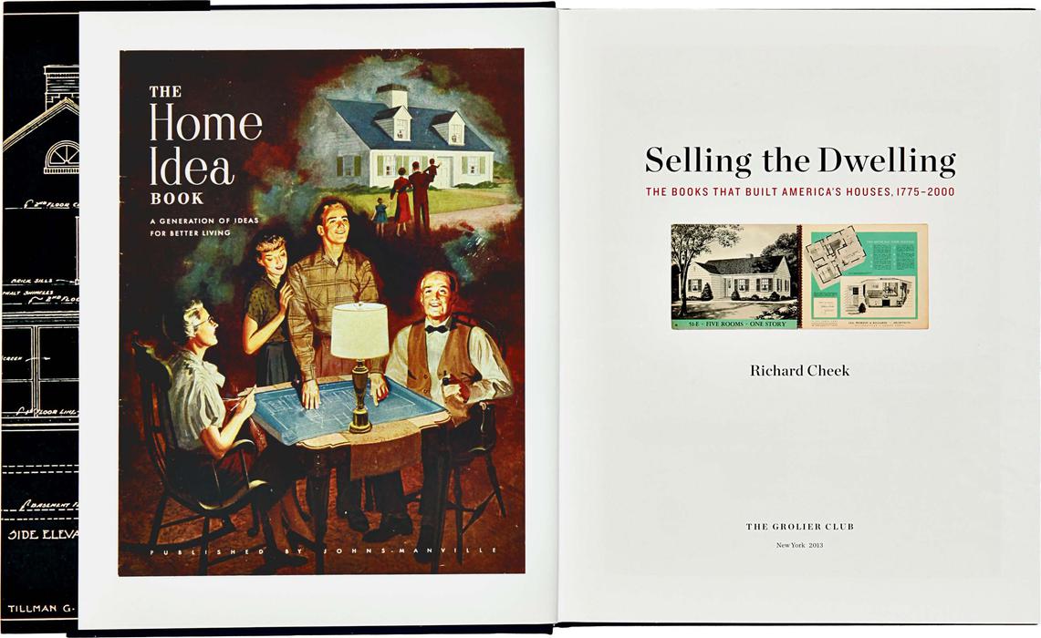 Colorful building guides, catalogs, magazines, and advertisements find their way into spirited thematic arrangements on the pages of this visual history of American domestic architecture. An architect’s ruler inspires text box frames and dividers on chapter opener pages. Published to accompany the exhibition “Selling the Dwelling: The Books That Built America’s Houses, 1775-2000” at the Grolier Club, New York City.